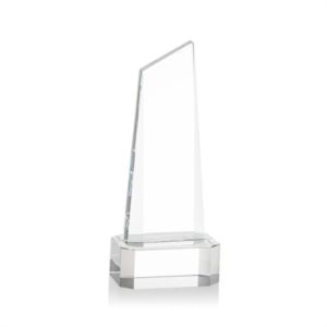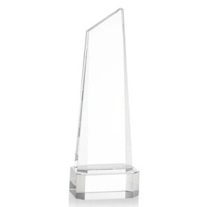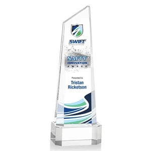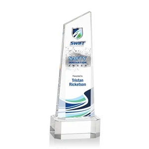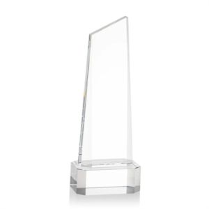 The thick Optical Crystal Belmont Tower VividPrint™ Award features a slanted top and is accentuated by exquisite deep bevels.