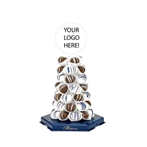 Chocolate centerpiece, featuring 50 handcrafted chocolate dipped. chocolate cake truffles, gift wrapped with a platter and ribbon.