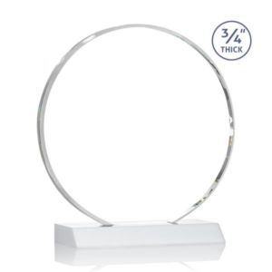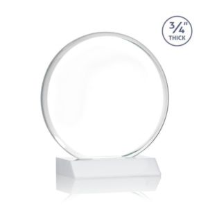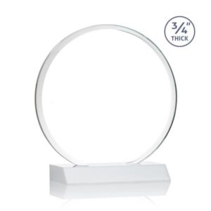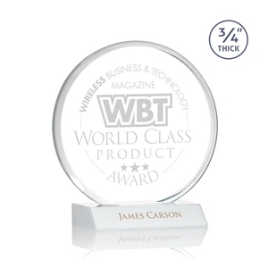 The striking Blackpool Award features a captivating Starfire Crystal disc mounted on a glistening White front mitered base.