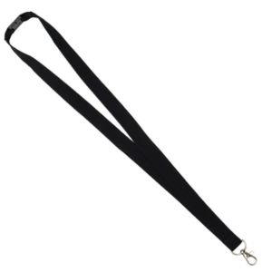 3/4" polyester strap lanyard with lobster claw hardware and breakaway release buckle.