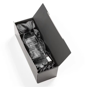 Lustrous optical crystal award with beautifully, beveled peaks and a Black base
