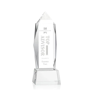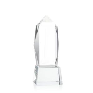 Lustrous optical crystal award with beautifully, beveled peaks and a Clear base