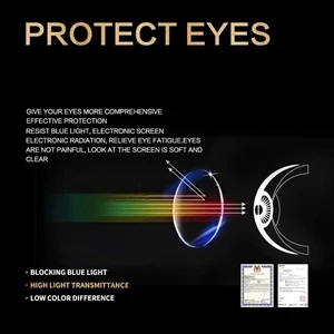 5.6" x 0.2" x 5.5" PC plastic blue blocking computer glasses.