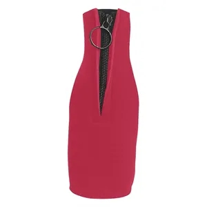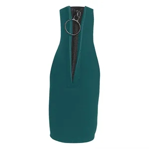 Long necked bottle insulator with zippered closure with O-ring pull.