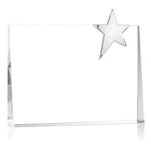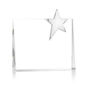 A refined rectangular optical crystal piece, highlighted by a stunning chrome star gracefully mounted on the top right corner.