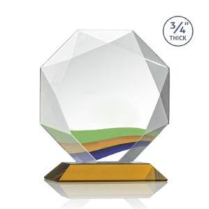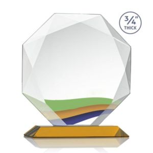Starfire octagon shape award with faceted edges on an Amber base.