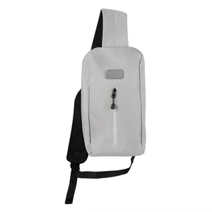 Sling backpack with an ergonomic crossbody design, expandable pocket, reflective details and a zipper.