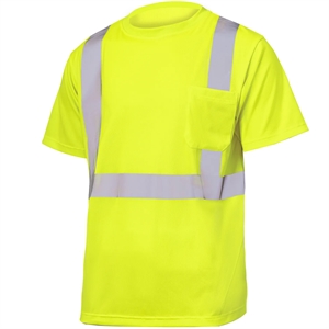 Hi-vis 130gsm Birdseye mesh T-shirt; ANSI/ISEA 107-2015 Type R Class 2, Left Chest Pocket, 2" width reflective tape, breathable!