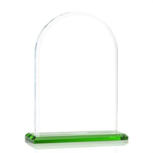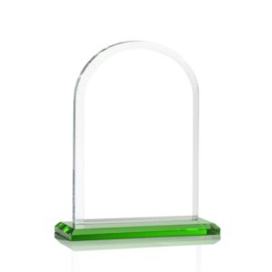 The Magnificent Bridgeport VividPrint™ Award on base features a 0.75" thick Starfire Crystal with an elegant arch design.