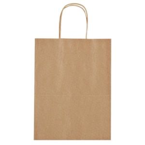 10" x 13" Kraft paper shopping bag with handles and room for custom graphics.