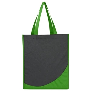 12" x 15" x 3" non-woven tote bag with accent trim.