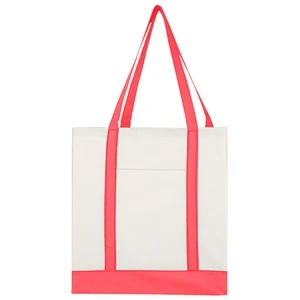 18" x 14" x 3 1/2" non-woven tote bag with colored trim and handles.