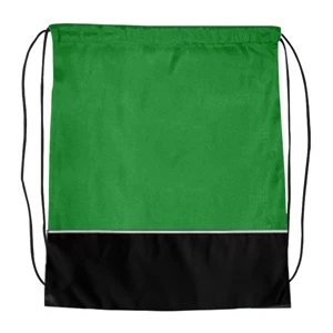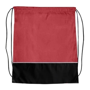 14" x 18" nylon drawstring backpack in assorted two-tone colors and dual shoulder straps.
