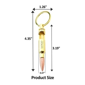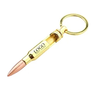 Gold zinc alloy keychain that can be used as a bottle opener. Length with chain is 4.33", length without chain is 3.19"