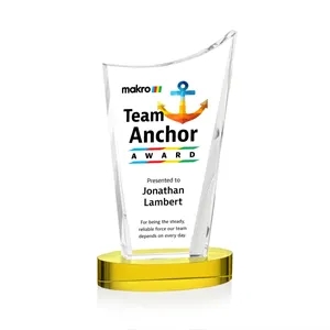 The Burnett VividPrint™ Award is a striking optical crystal recognition piece featuring a sleek, tapered design.