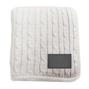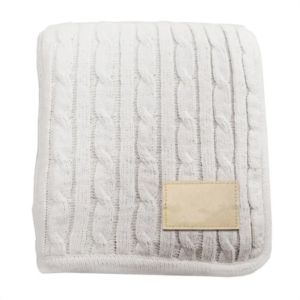 50" x 60" blanket with beautiful knit pattern on one side and soft, faux lambswool lining on the other.