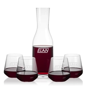 Crystalline Carafe Set. Includes the 40oz Caldmore Carafe and your choice of 2 or 4 stemless wine glasses.
