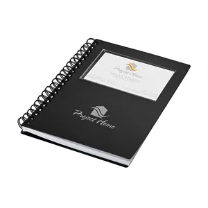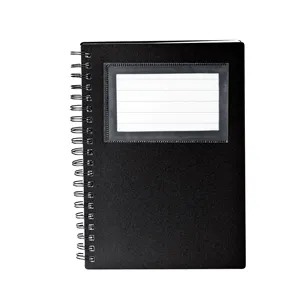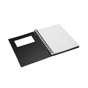 0.75" x 7" x 5.38" 70-page spiral notebook with plastic business card holder cover.