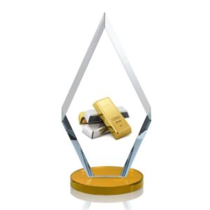 This simple yet elegant starfire diamond award features deep interchanging bevels and is mounted on an amber starfire base.