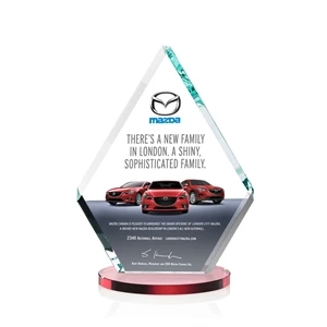 Our extraordinary double-sided beveled Starfire diamond award is combined with red crystal. Let your message POP with VividPrint