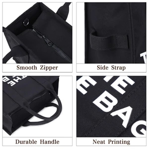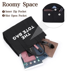 13.8" x 11" x 5.9" tote bag with an adjustable shoulder strap and zipper.