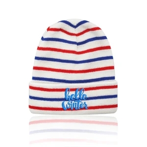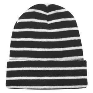 Acrylic knitted beanie with striped design; one size fits most.