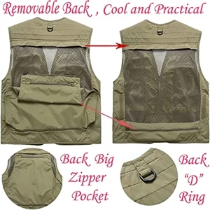 Made of chinlon, zipper front, regular fit, v neck, solid color, mutiple pockets, lightweight, quick dry, breathable.