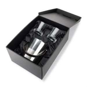 The Catania Ice Bucket with On-the-Rocks Set brings refined style and practicality to any bar or entertaining space.