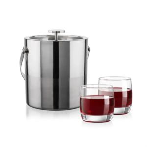 The Catania Ice Bucket with On-the-Rocks Set brings refined style and practicality to any bar or entertaining space.
