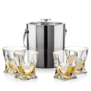 The Catania Ice Bucket with On-the-Rocks Set brings refined style and practicality to any bar or entertaining space.
