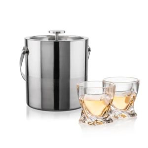 The Catania Ice Bucket with On-the-Rocks Set brings refined style and practicality to any bar or entertaining space.