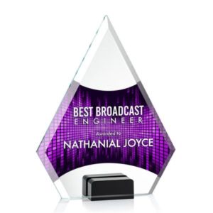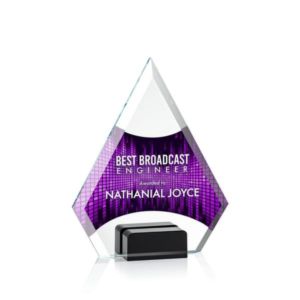 Octagon Slant-Top Crystal on Black Pedestal Base Award