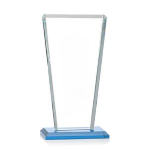 Our extraordinary beveled Starfire angular award is combined with sky blue optical crystal