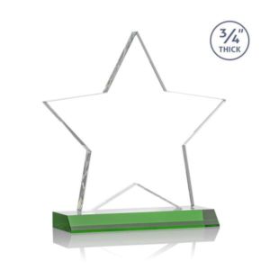 Optical crystal star shape award on a Green optical crystal base. Let your message POP with full color VividPrint!