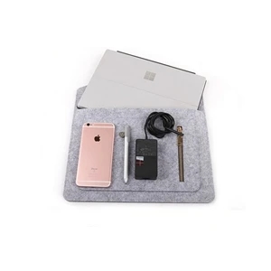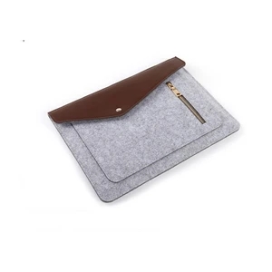 Clamshell Felt Laptop Sleeve w/Button Closure & Zipper Pouch; for laptops or tablets from 11" to 15"