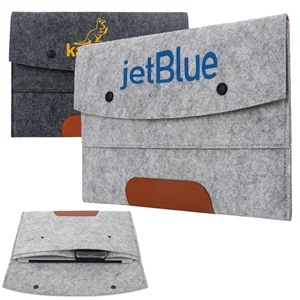 Clamshell Felt Laptop Sleeve w/ Two Compartments for laptops or tablets from 11" to 15"