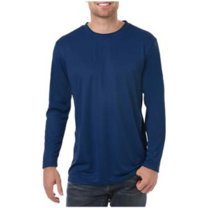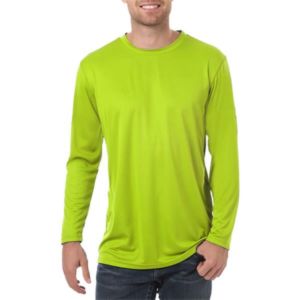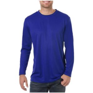 100% 3.8 ounce polyester long sleeve winter t-shirt.
