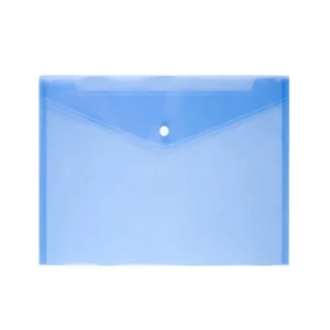 13" x 9.4" PVC clear document pouch in assorted colors with snap closure and 50-100 sheet capacity.