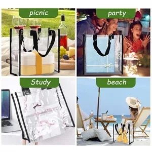 Thisclear plastic tote bag has big space and handles, which is sufficient for your daily use and replacement.