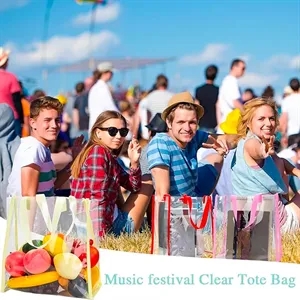 Available in three sizes, these clear tote bags are perfect for shopping, events, and travel. Rush service is available.