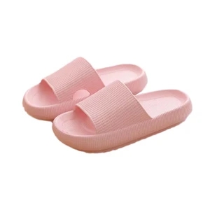 Pair of EVA and fabric cloud slippers with non-slip action.