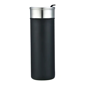 18 oz. stainless steel tumbler with double wall, vacuum insulation and a flip-top, leak-resistant lid.