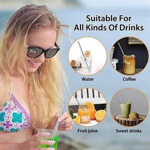 Reusable telescopic stainless steel straw with brush & case, fits all cups, eco-friendly, portable, durable.