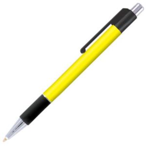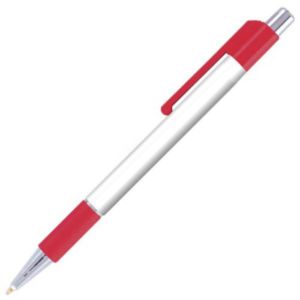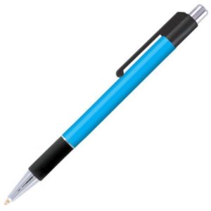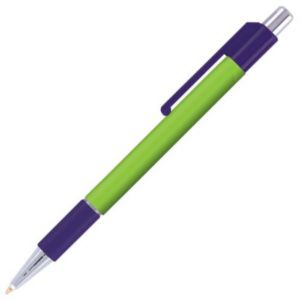 Grip pen with vibrant colors and bright chrome accent trim.