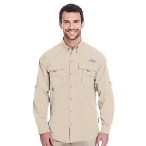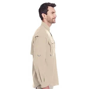 Lightweight 3 oz. Tactel nylon shirt with Omni-Shade, roll-up sleeves, tab holders, button-down collar, utility loop.