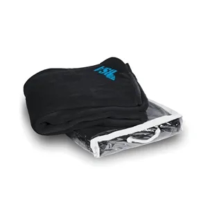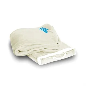 Gift set with 50" x 60" fleece blanket, 20 oz. economy stainless steel tumbler and customized 4" x 5" post card.