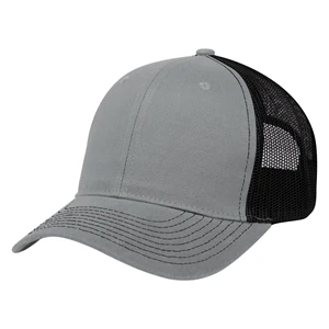 Mesh back cap with 100% brushed cotton twill crown, pre-curved visor, and 6-panel, low-profile construction.