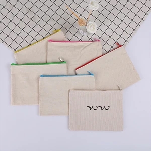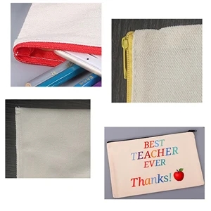 8" x 5.5" white canvas pencil pouch with color zipper closure.
