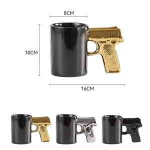 Creative Ceramic Cup Golden and Silver Pistol Gun Handle Mug Personalized Drink Water Coffee Cup 3D Shape Cups Ceramic Mug