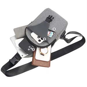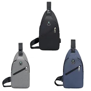 Large capacity with 3 zipped pockets; side USB/front headphone holes; adjustable strap; 6.7x3.15x13in, ideal for work/trips.